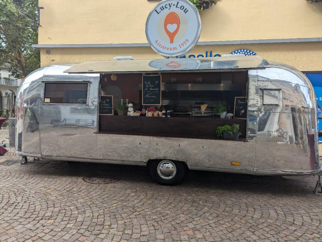 Unseren original “American Airstream” aus dem Jahre 1959, haben wir liebevoll restauriert und in einen modernen Foodtruck mit Hochleistungsfritteuse und Grill verwandelt.